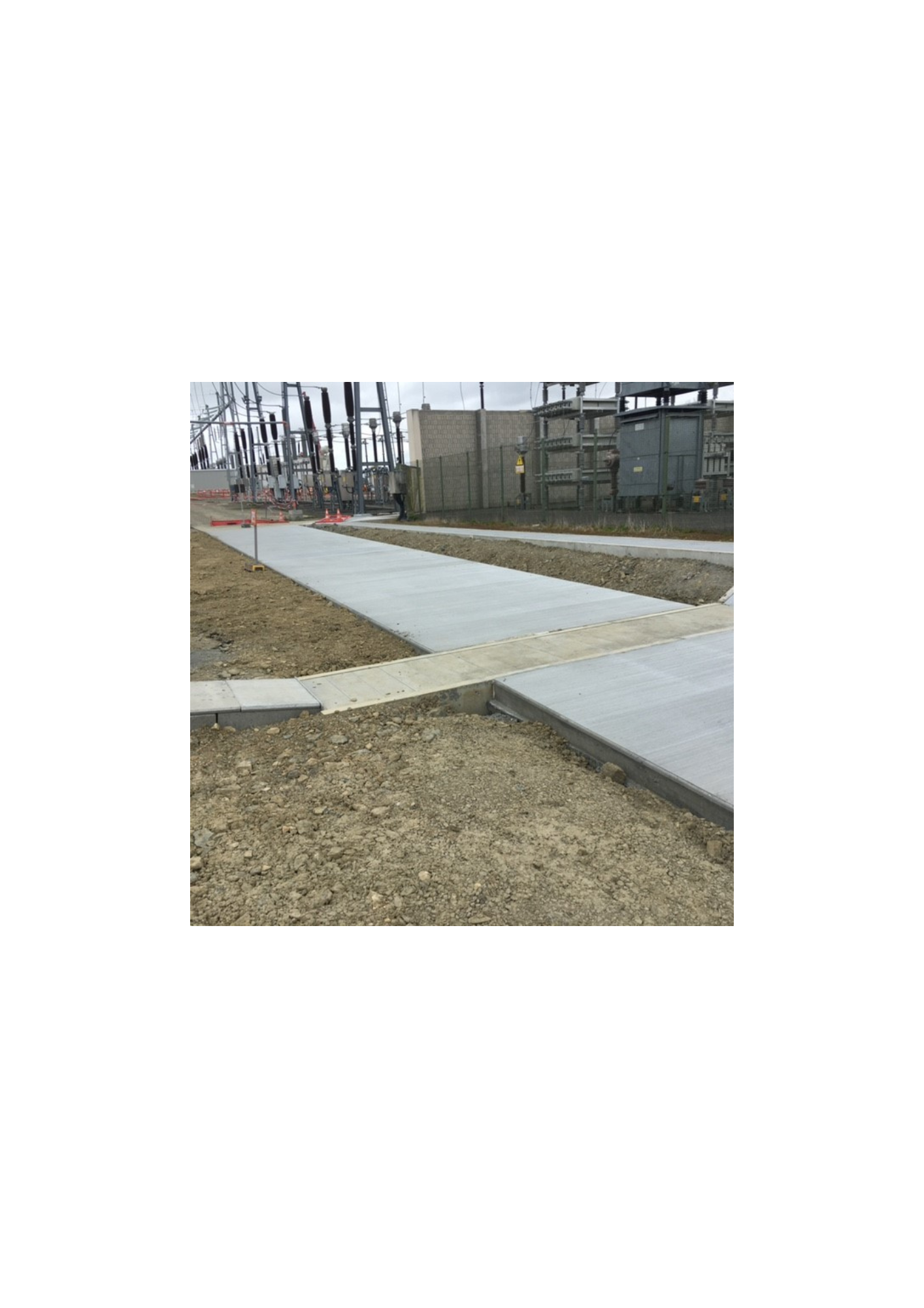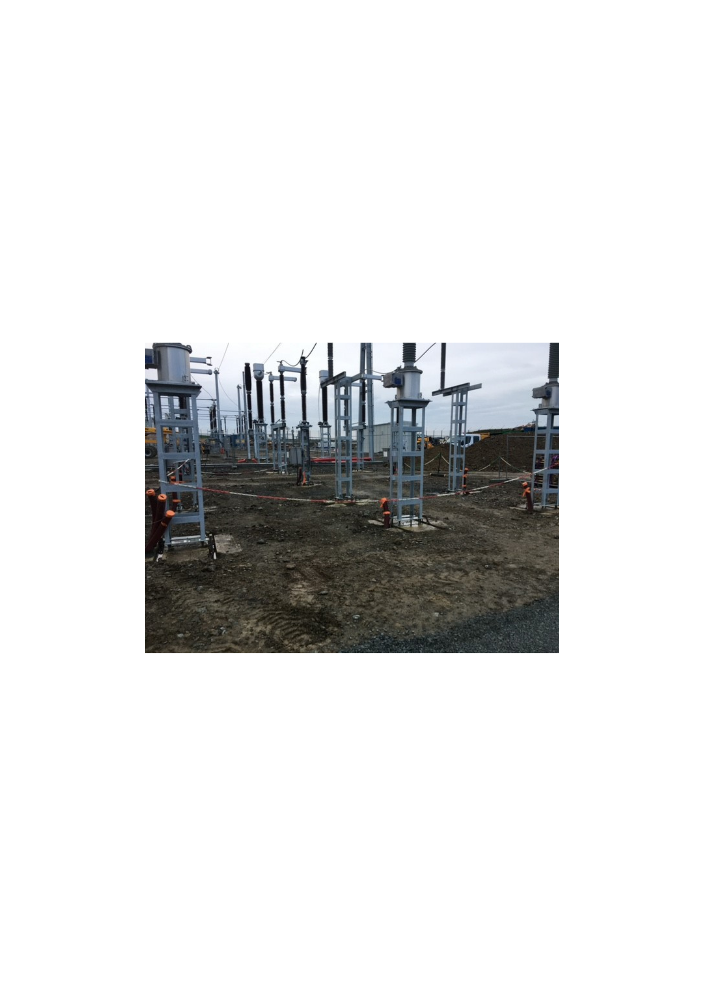 Travaux de Génie Civil : réalisation des massifs charpentes principales et secondaires, des tranchées de MALT, des fourreaux et des pistes béton.