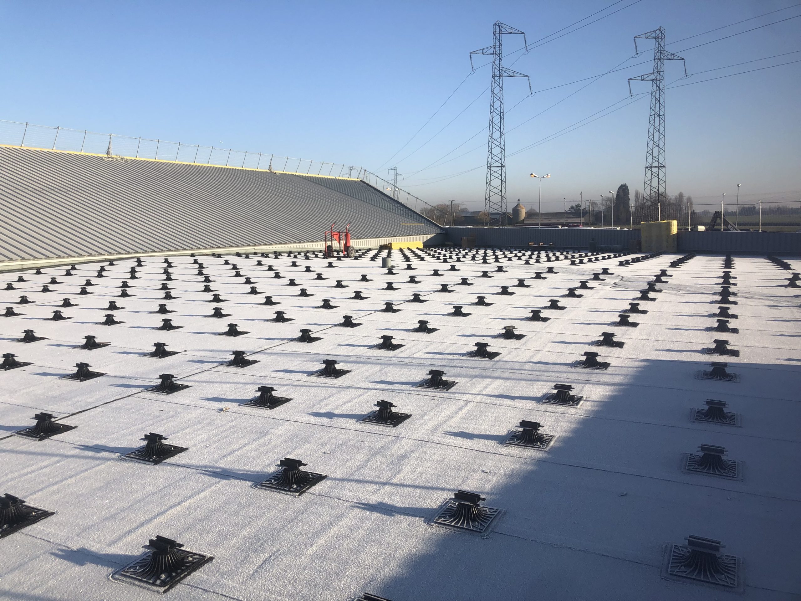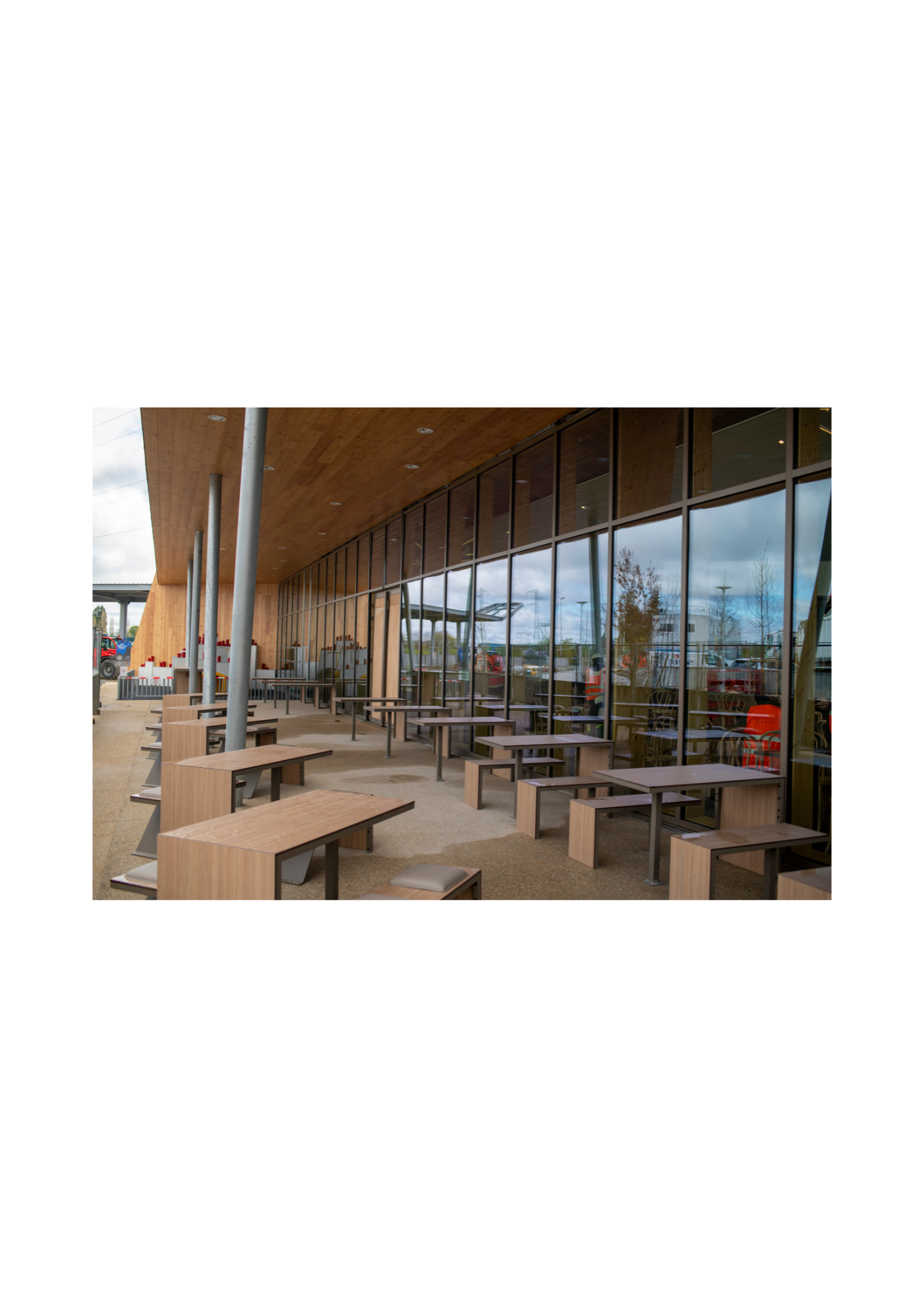 chantier complexe de par la pose des prémurs de 5m de haut sous une ligne haute-tension située à 10m de haut et d'un mur rideau aluminium sur des épines en bois.